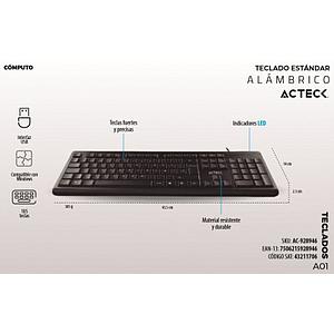 Teclado ACTECK Entry310 AC-928946 USB, Estándar, Negro, Alámbrico