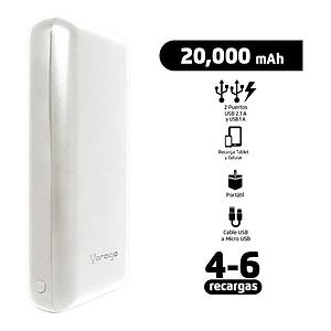 Power Bank VORAGO PB-550-WH, Blanco, 20000 mAh, 5 V, Li-Ion